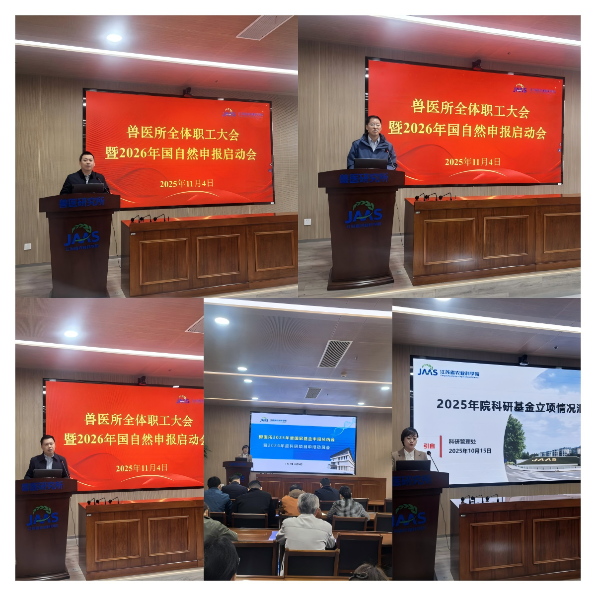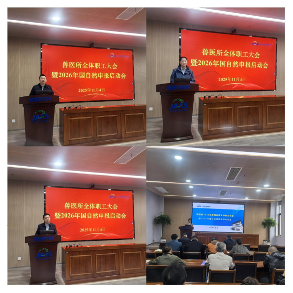 11月4日上午,兽医所召开全体职工大会暨2026年国家自然科学基金启动会,党总支书记陈晓强主持会议,全体职工参会。会议学习了二十届四中全会精神、部署了国自然项目申报工作、开展了集体廉政谈话,为事业发展凝聚思想共识、明确工作方向。
