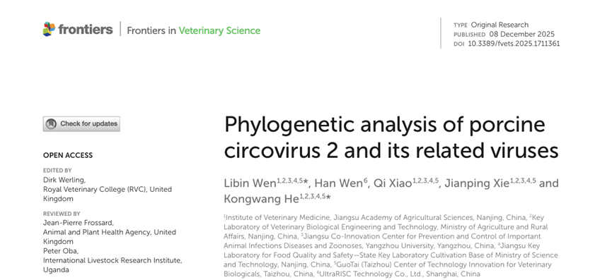 江苏省农业科学院兽医所为论文第一完成单位,温立斌研究员为第一作者,与何孔旺研究员为共同通讯作者。