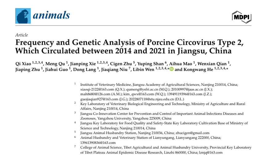 江苏省农业科学院兽医所为论文第一完成单位,肖琦副研究员为第一作者,温立斌研究员与何孔旺研究员为共同通讯作者。