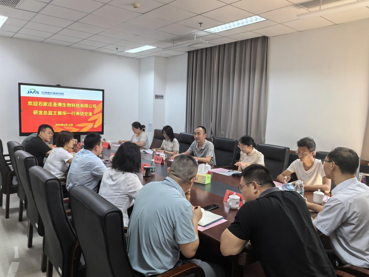 6月16日,石家庄圣博生物科技有限公司研发总监王振华一行5人来我院兽医所开展调研交流。院科研处处长、兽医所所长李彬主持接待,副所长宋艳华、各创新团队负责人以及动物腹泻病防控团队部分科研骨干共同参加。