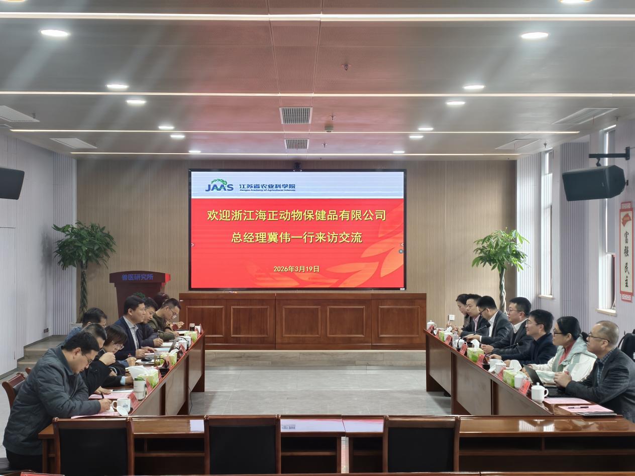 3月19日,浙江海正动物保健品有限公司总经理冀伟一行8人来我院兽医所开展调研交流。兽医所副所长冯志新主持接待,党总支书记陈晓强、副所长宋艳华、各创新团队负责人共同参加。